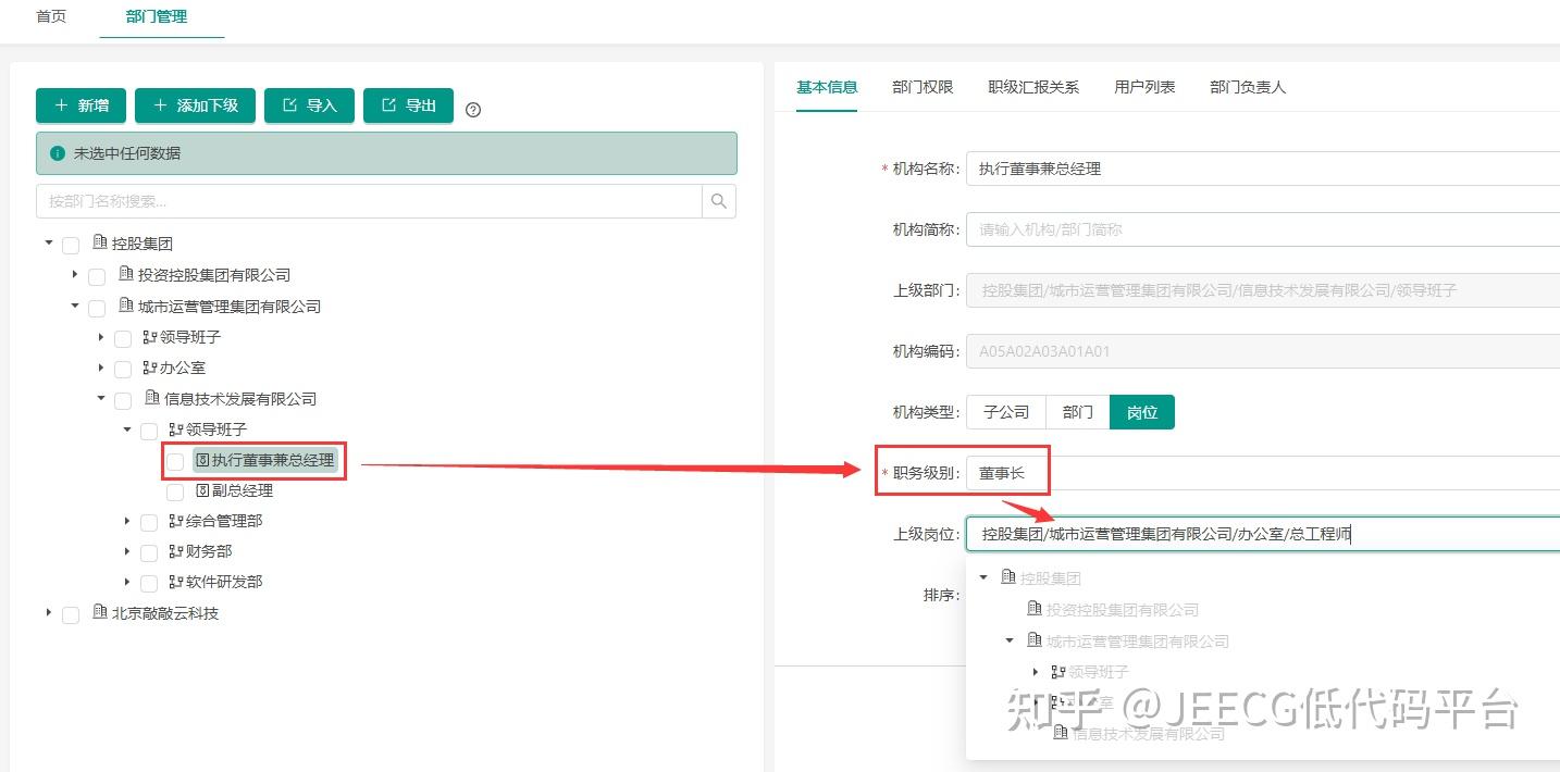 - 董事长岗位:仅可选择上级公司(子公司或总公司)各部门岗位为上级