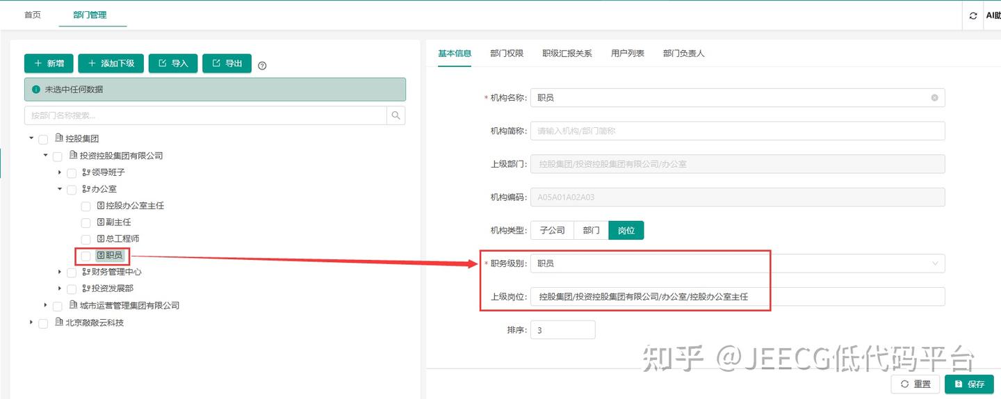 - 非董事长岗位:仅可选择当前父级部门及本部门更高职级的岗位